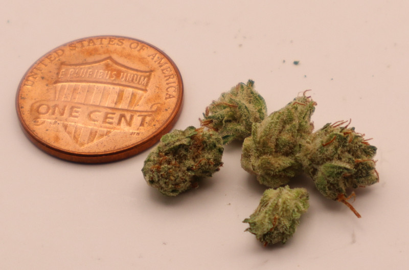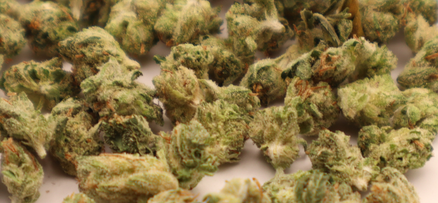 Appearance: Dense, frosty buds with lime and lavender hues wrapped in a crystal-white coating.