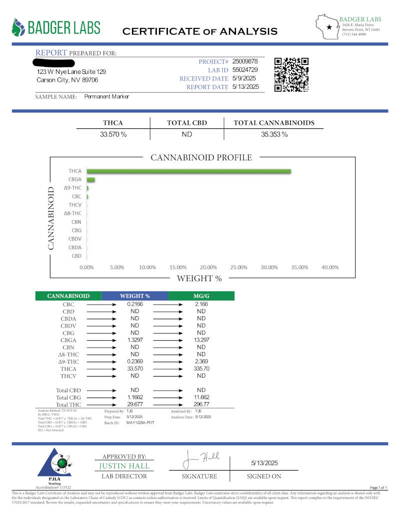 Permanent Marker THCA Flower Indica dominant Hybrid B buds