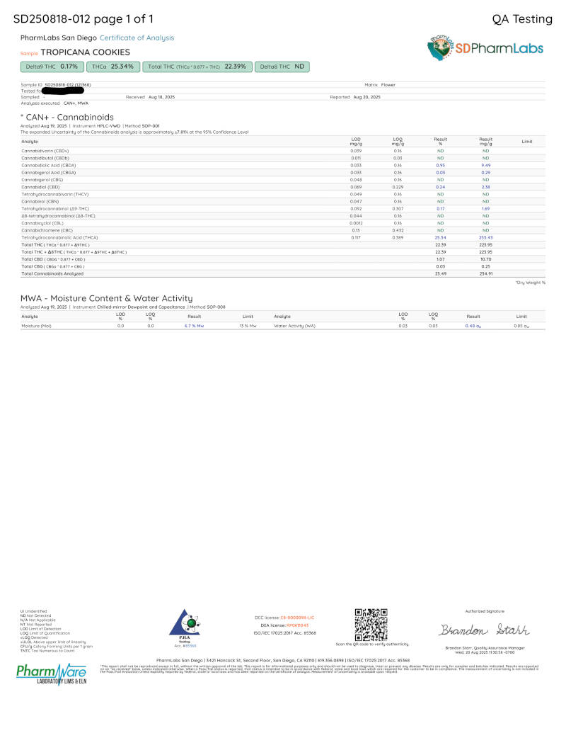 Uncle Buddy’s Tropicana Cookies THCA Flower Features:
